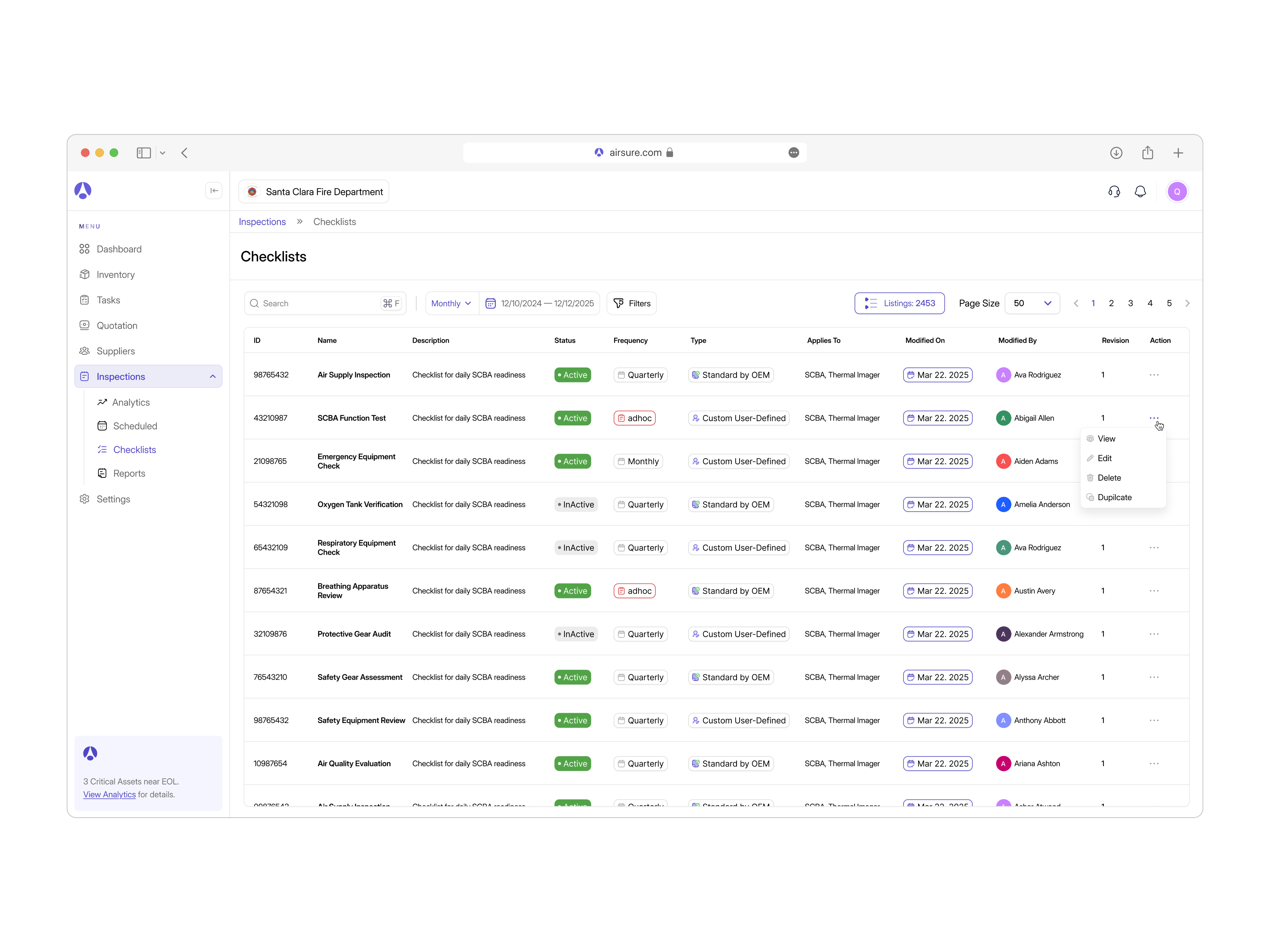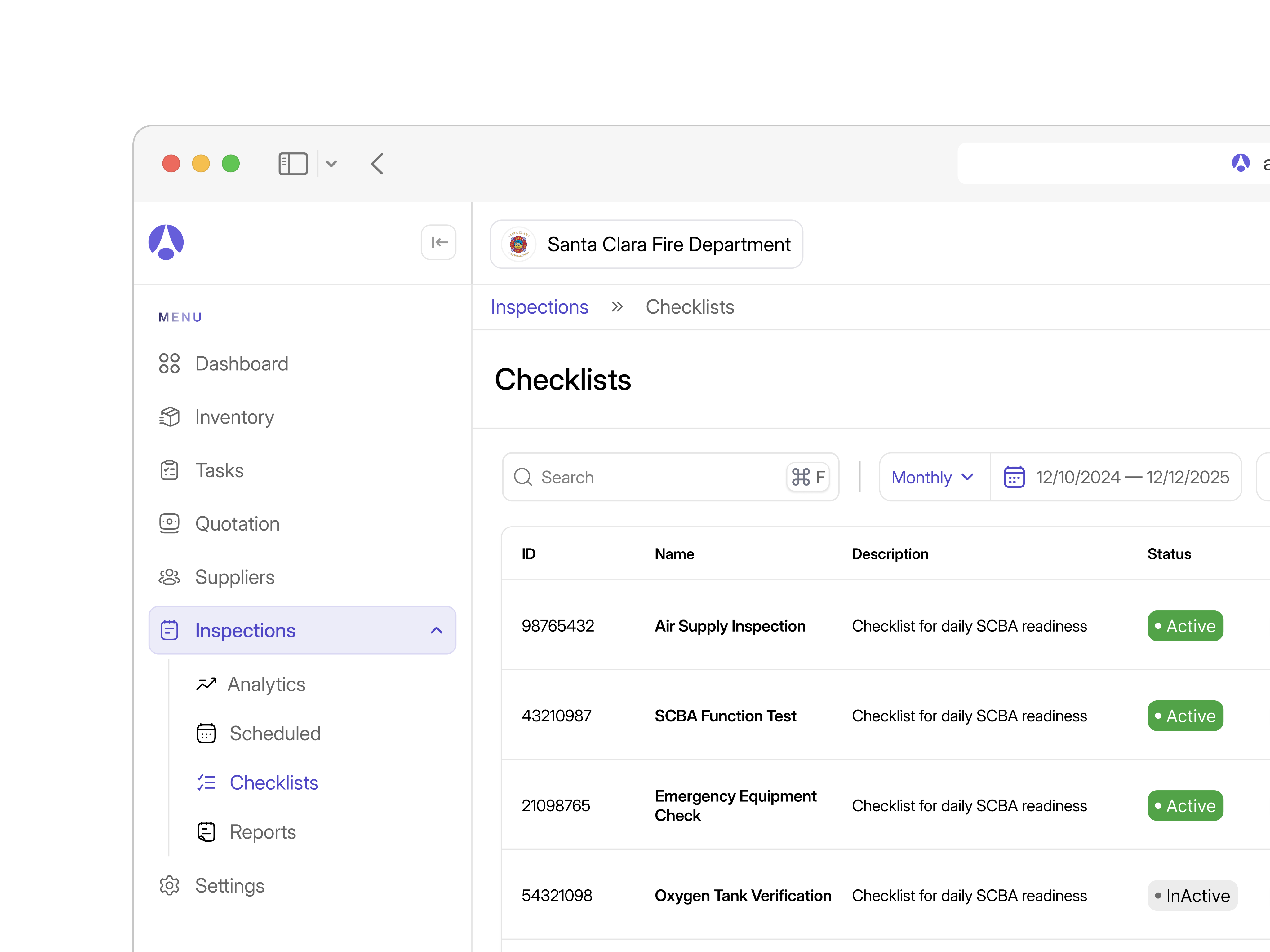 Just designed a checklist management screen for U.S. Fire Departments — built for admins to track equipment, inspections, and compliance with precision.